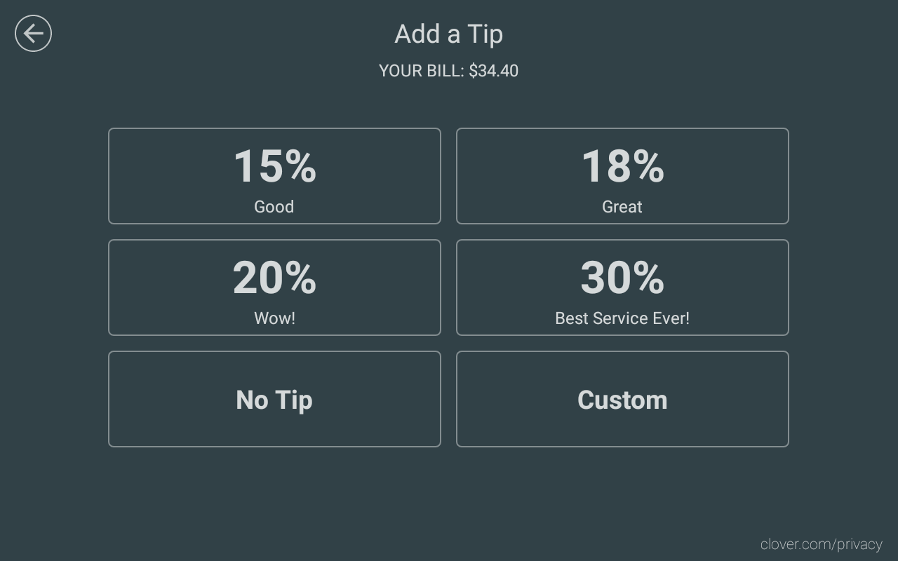 The checkout tip screen on Clover POS