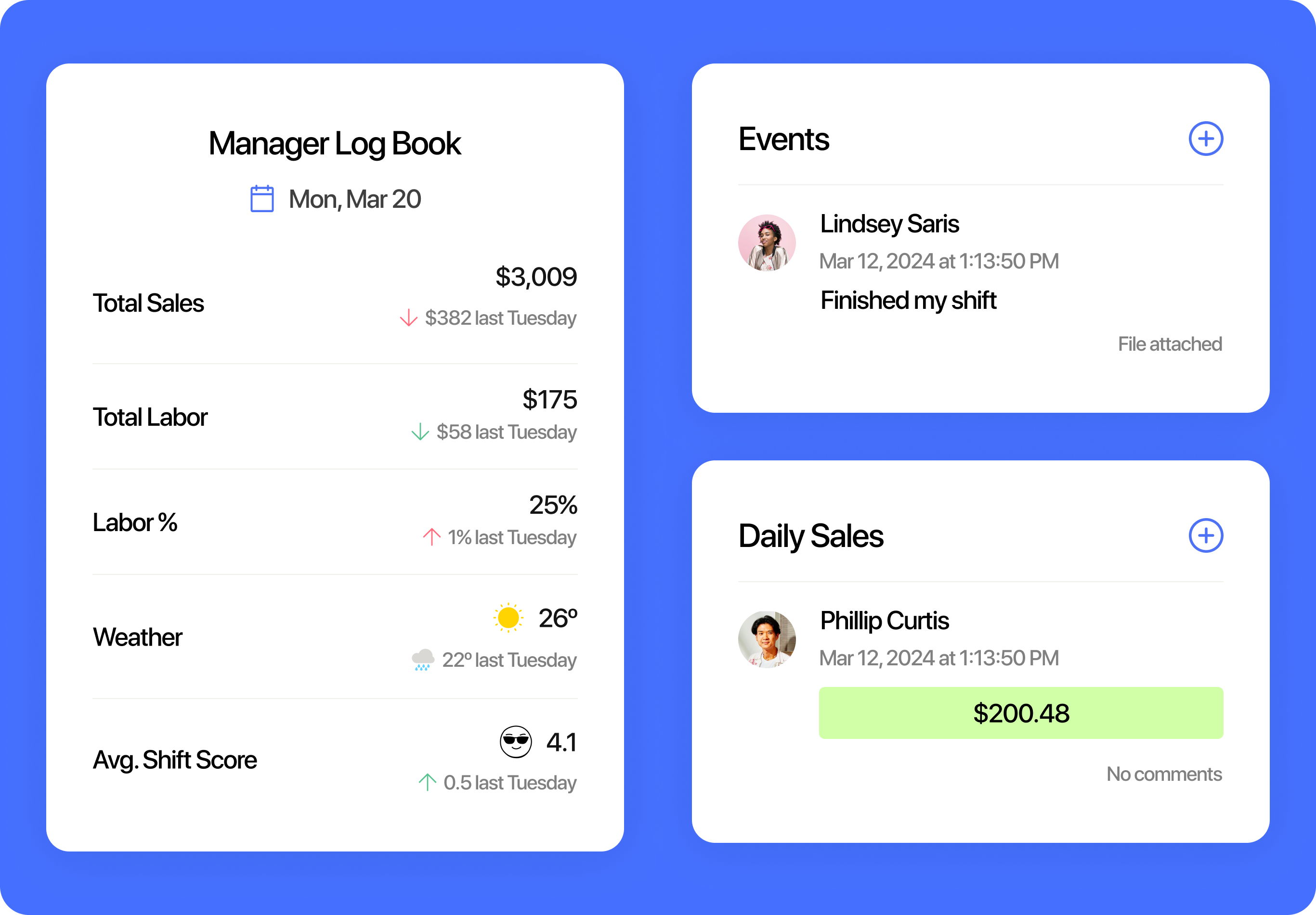 Cut down on all the back-and-forth, build more effective schedules, and hit your labor targets by bringing together scheduling, time clocking, tip management, and payroll in one app.